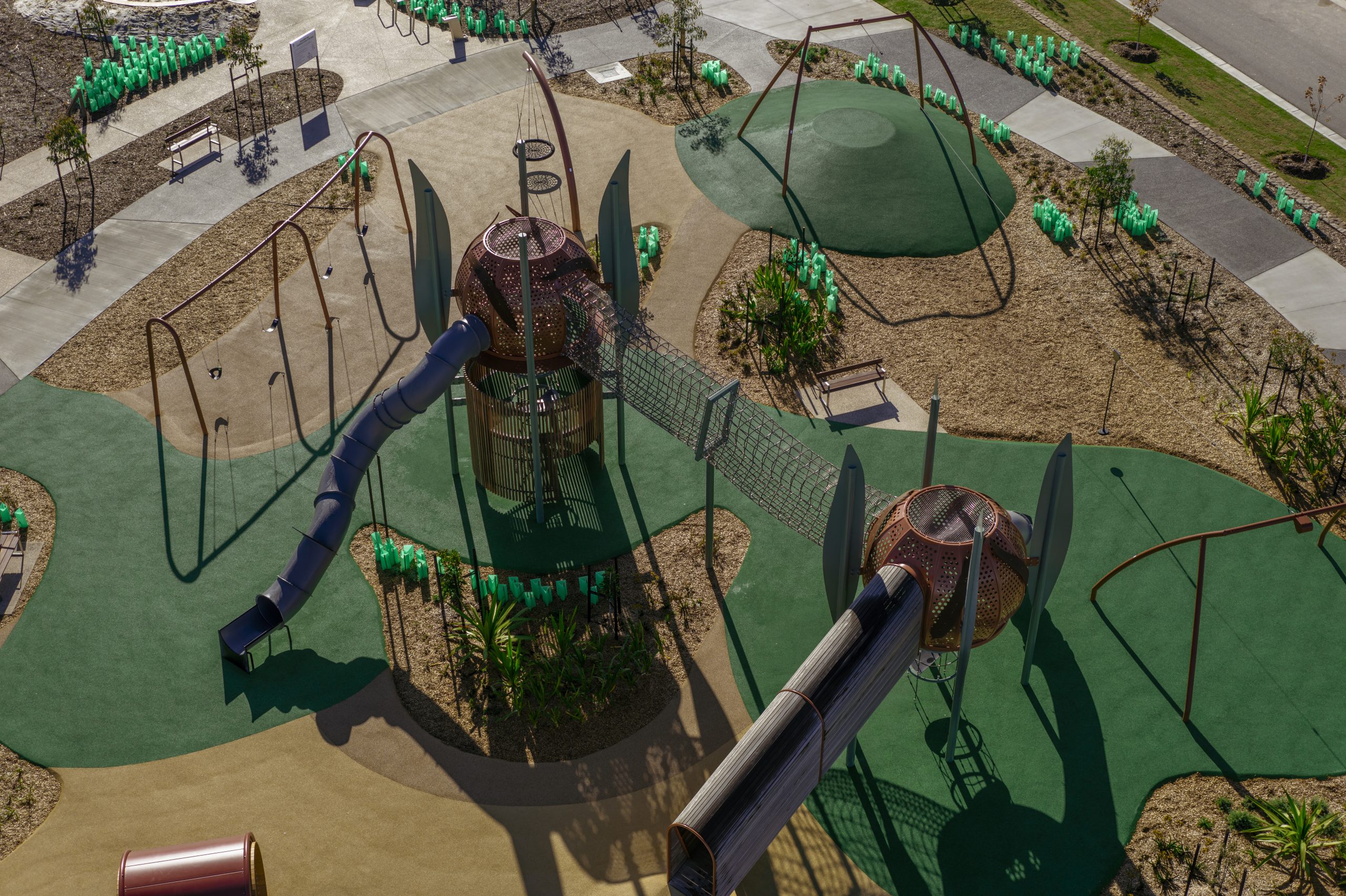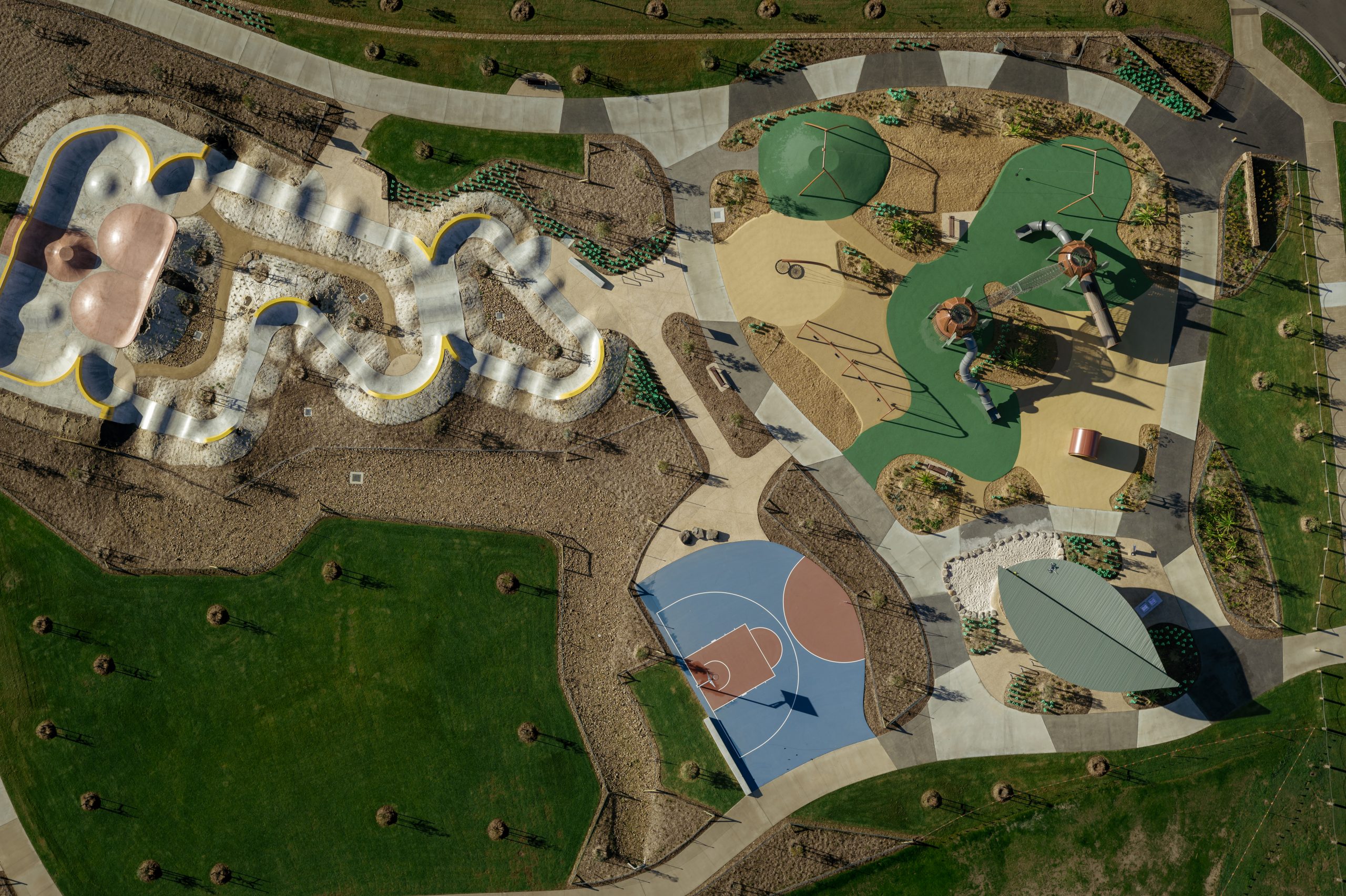 Designed with growing families in mind, this parkland boasts new amenities made for keeping active. Kids can now play on the adventure tower, zip around on the flying fox, spin on the mouse wheel and have fun on the swings. From a sandpit for the little ones to a half basketball court and pump track for the older kids (and the young at heart), there’s something for everyone.